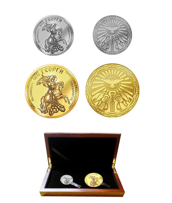 Колекция Свети Георги. Състои се от сребърен медал и медал с цялостна позлата Свети Георги.