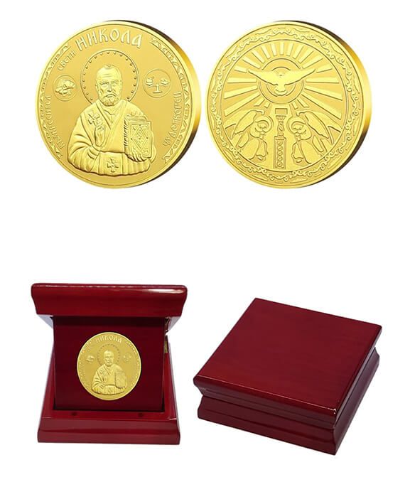 Подарък за Никулден - позлатен медал с лика на Свети Николай Чудотворец.