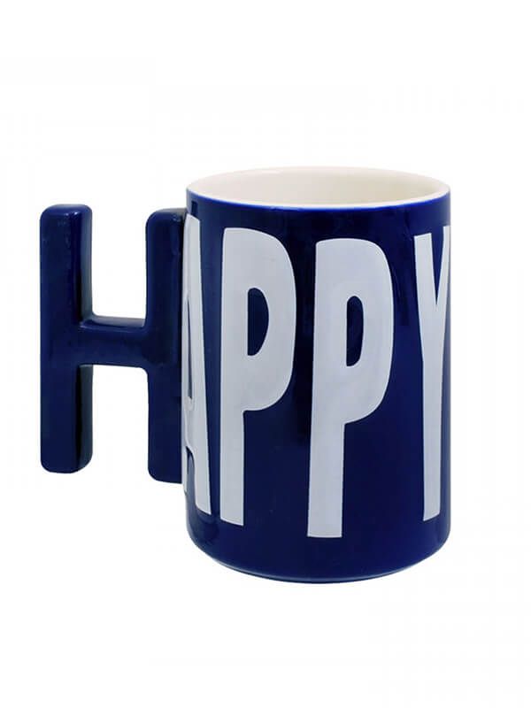 Голяма чаша с надпис "Happy". Размери: диаметър 9 см, височина: 12 см, ширина: 14 см (с включена дръжката).