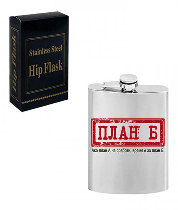 Оригинален подарък за всякакви поводи, а защо не и без да има такъв - манерка с надпис "План Б". Специално за пиещи - за да носят навсякъде по малко от любимата си напитка.