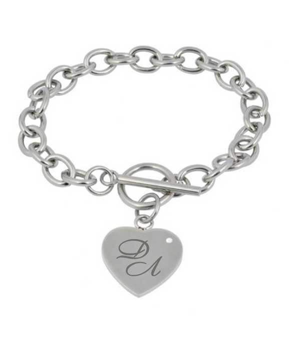 Подарък за жена - гравирана гривна сърце с малко камъче на него. Елегантно и нежно бижу за най-страхотната жена. Подходящ подарък за рожден ден или деня на жената 8-ми март.