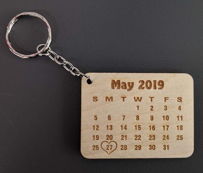 Ключодържателят е изработен от шперплат с дебелина 3мм. Датата от месеца определяте вие. Моля, попълнете я в "Персонализиране на продукта" по-долу.