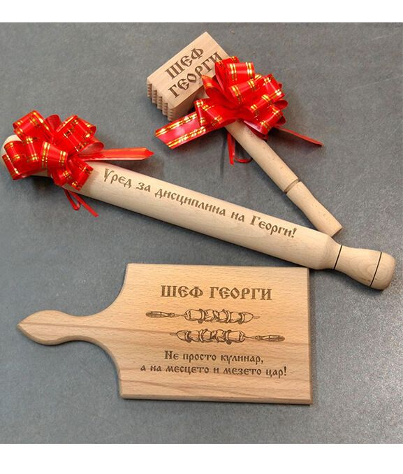 Подарете на приятел или близък майстор или любител готвач - надпис с гравиране. Комплект от дъска, чук и точилка. Подарък за всякакъв повод и без да има такъв.