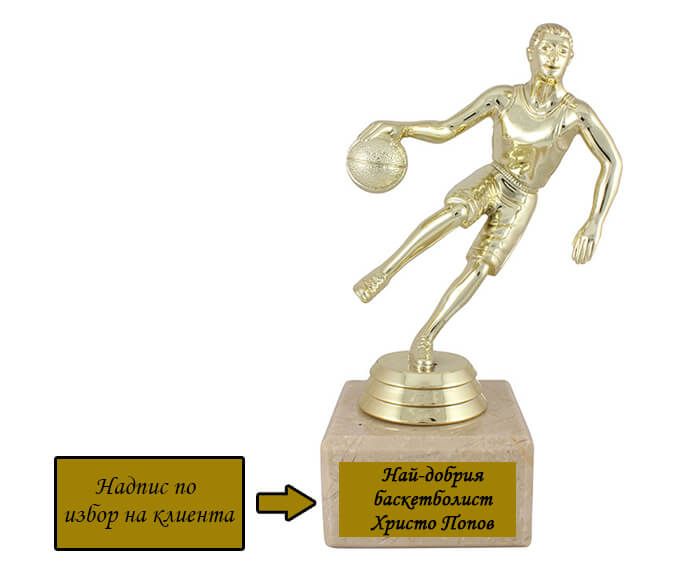 За всички баскетболисти - професионалисти или любители на спорта. Фигура на тема баскетбол с възможност за поставяне на пожелание или кратък надпис на основата. Зарадвайте свой близък или приятел с тази статуетка баскетбол. Със сигурност ще го усмихнете, а фигурата ще краси офиса или дома му, пораждайки мили чувства.