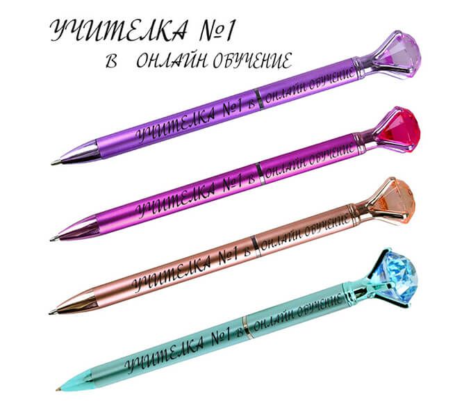 Подарък за най-готината учителка - химикал с диамант и надпис "Учителка №1 в онлайн обучението". Подарък от благодарност за най-страхотната учителка.