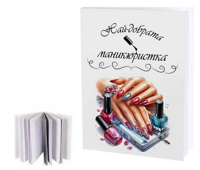 Подарък за благодарност към вашата маникюристка. Изкуството, което прилага на вашите ръце и нокти заслужава подарък. Тефтер за маникюристка - нека в него да записва или часовете си или други важни неща. Зарадвайте я с нещо практично и отличително.