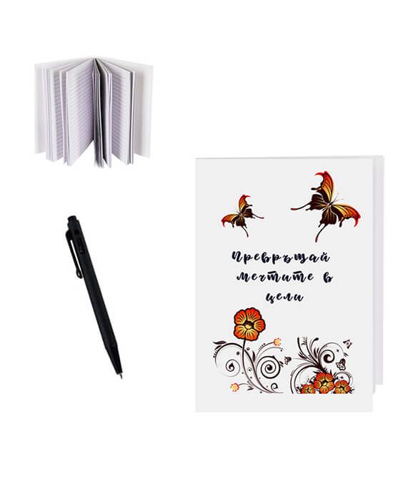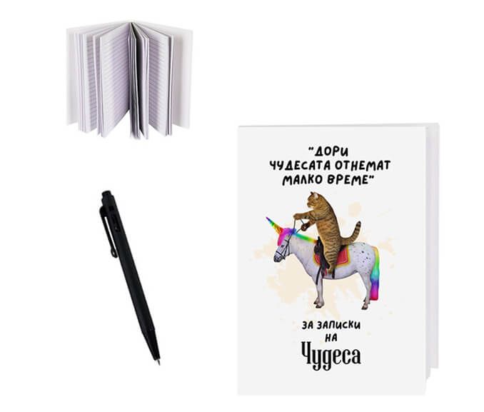 Комплект от малко джобно тефтерче и химикалка. Оригинален начин да повдигнете духа на ваш близък.
