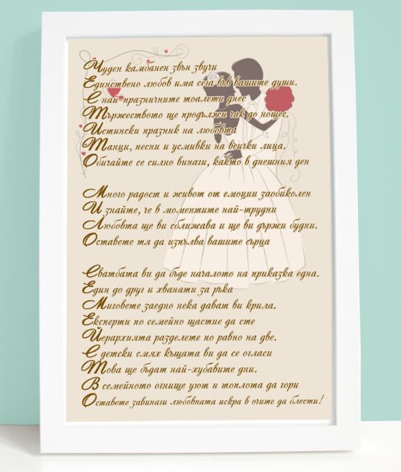 Начало Подаръци за сватба Пожелание за младоженци в акростих в рамка