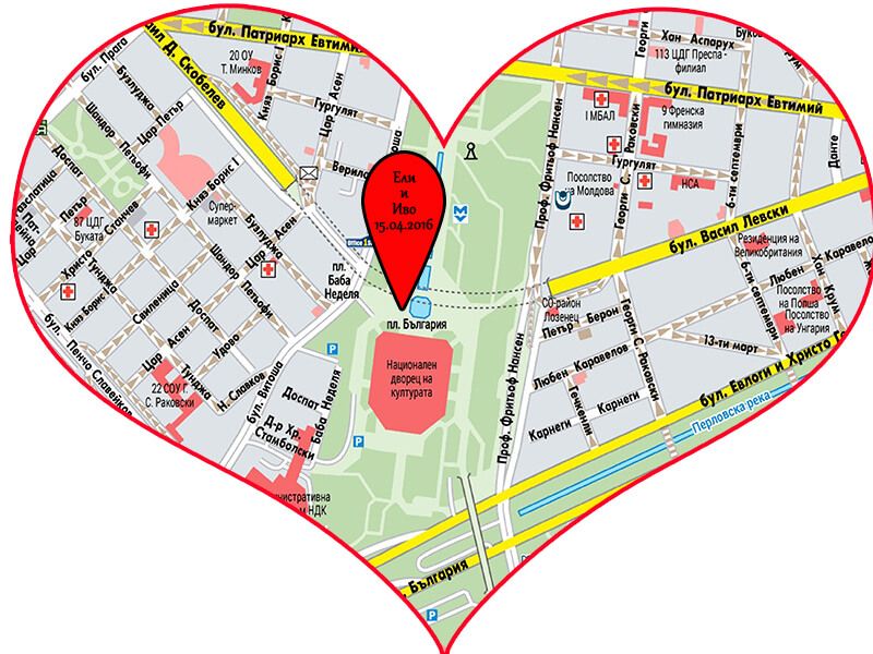 Тениска за мъж или жена с изображение на мястото на първата ви среща. Моля, поълнете адреса на мястото на срещата, както и дата и имена в "Персонализиране на продукта" по-долу.