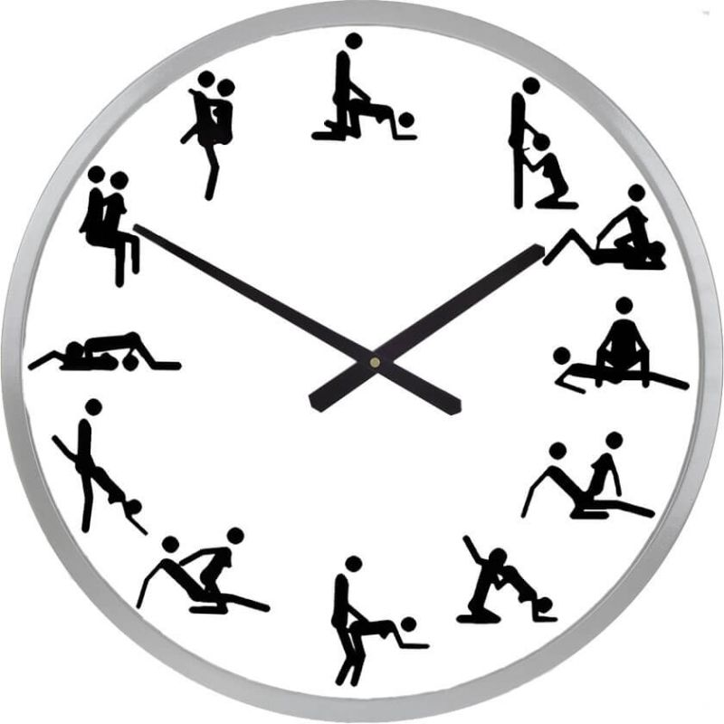 Стенен часовник Кама Сутра с пози за всеки час от денонощието.