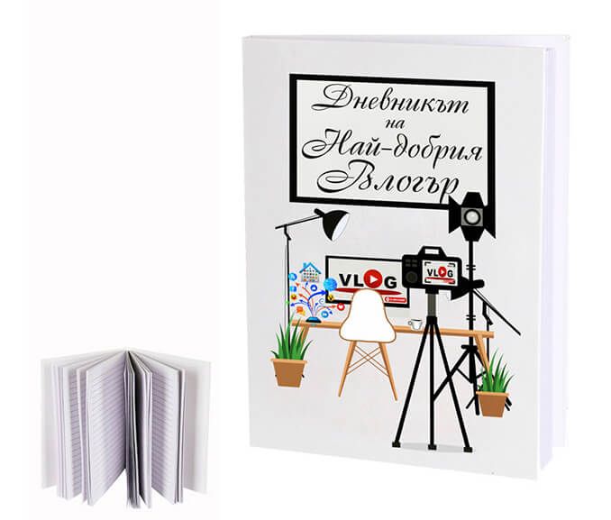 Тефтер с надпис "Дневникът на най-добрия влогър". Специално за най-запалените инфлуенсъри. Практичен подарък, тефтер, в който да записва всички важни неща.